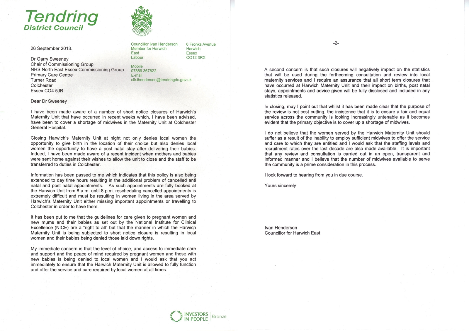 All local Labour councillors are committed to doing everything possible to retain all existing services at Harwich’s maternity unit and wish to place on record our thanks and support to all of its staff for the wonderful work they are doing.
