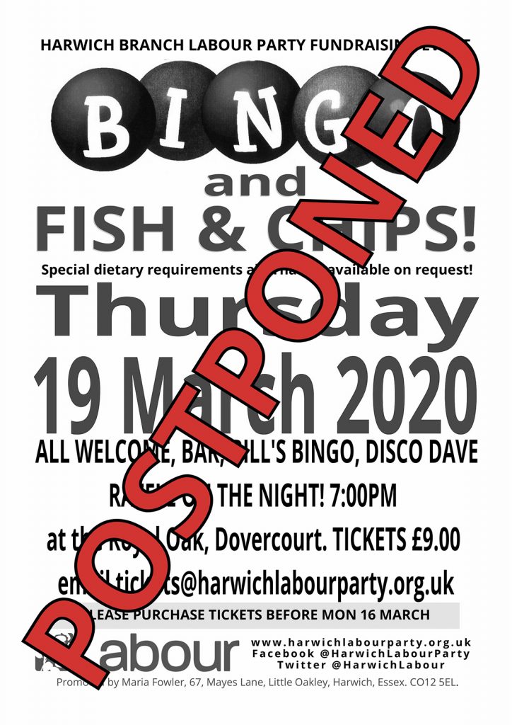 Due to concerns regarding the mounting coronavirus outbreak, our Bingo Night is postponed, to be rearranged.